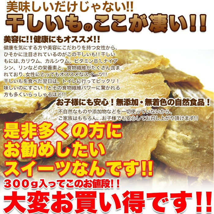 ■商品名:訳あり干し芋300g ■品名:干し芋 ■原材料名:さつま芋(茨城県産) ■内容量:300g ■賞味期限:製造日より90日(約30日〜90日弱賞味期限が残ったものでのお届けとなります) ■保存方法:直射日光、高温多湿を避けて保存して下さい。