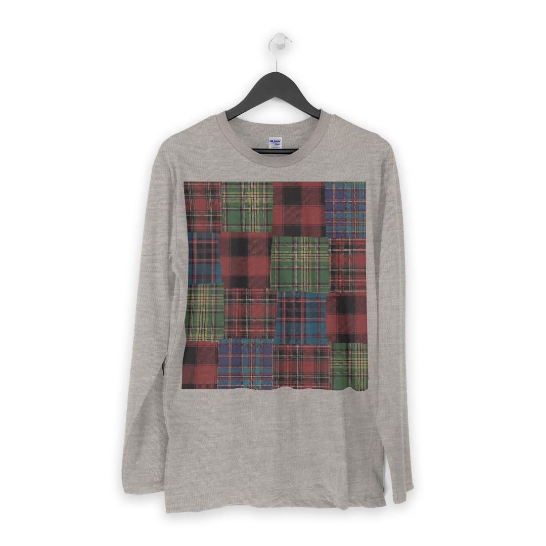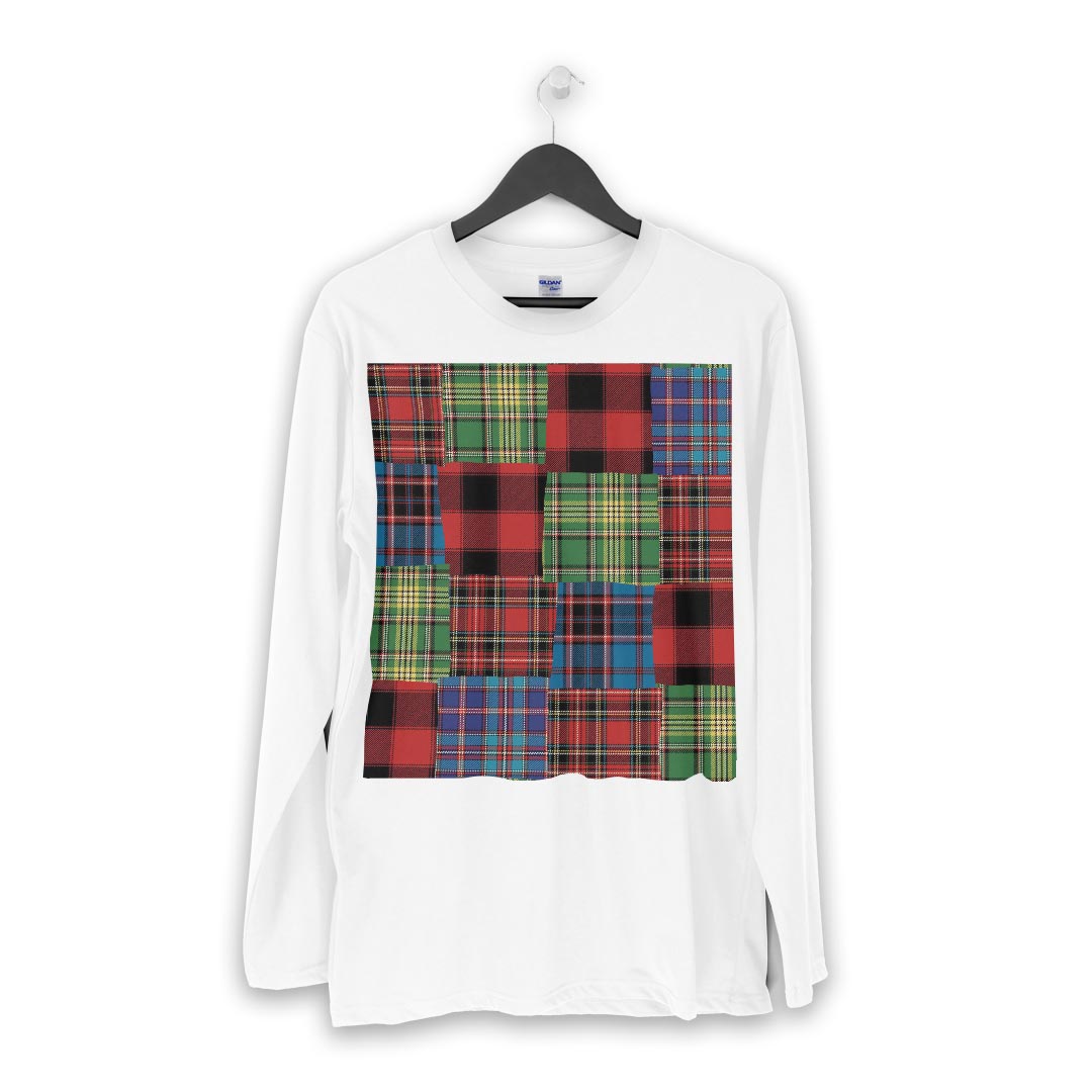 ロング tシャツ メンズ 長袖 ホワイト グレー デザイン XS S M L XL 2XL Tシャツ ティーシャツ T shirt long sleeve 012413 チェック カラフル キルティング